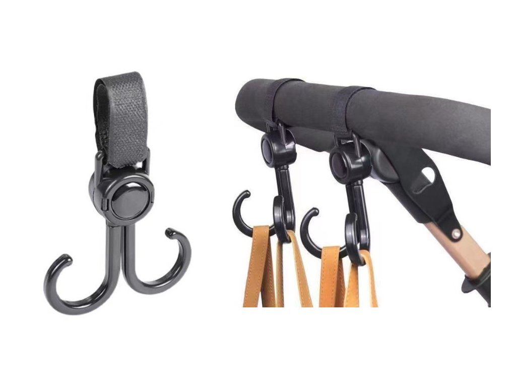 Háček, háček na kočárek dvojitý, umělý, na suchý zip, ČERNÝ