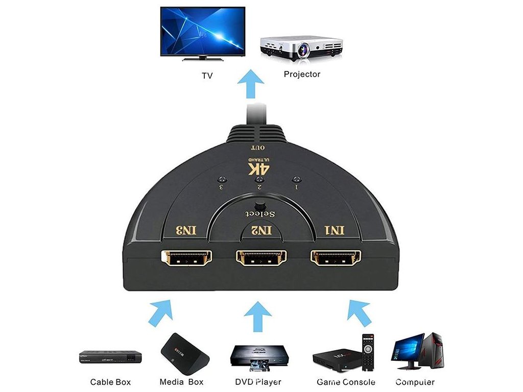 ✅ 3 vstupy HDMI a jeden výstup HDMI