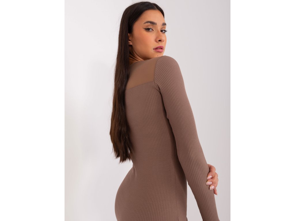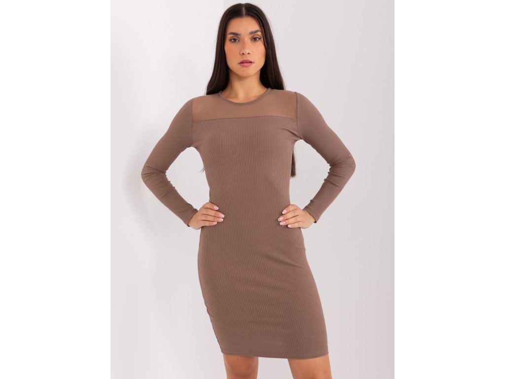 Hnědé šaty s dlouhými rukávy pro každý den - BASIC FEEL GOOD