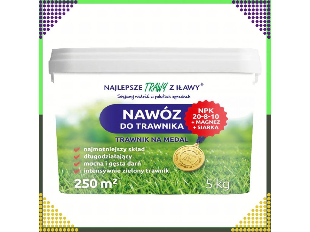 Hnojivo na trávník NPK 20-8-10 + hořčík + síra Vícesložkové granule Kbelík 5 kg 250 m