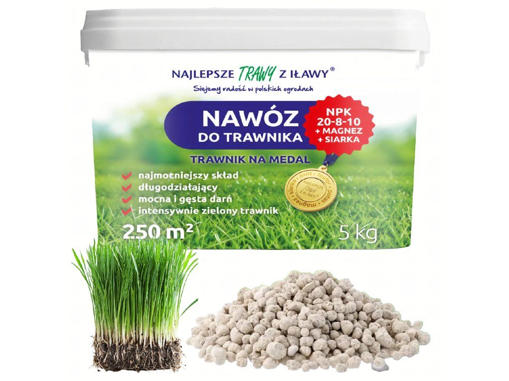 Bohaté složení – obsahuje dusík, fosfor, draslík, hořčík a síru pro komplexní výživu trávy.