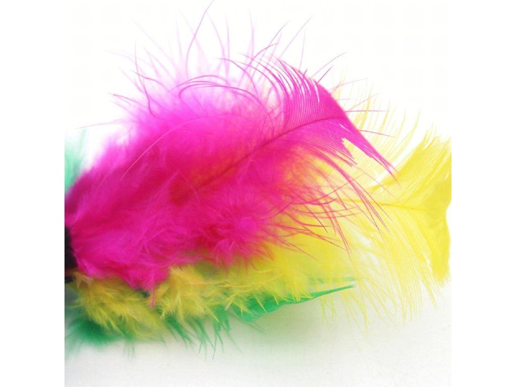 Materiál: plast, kov, peří.