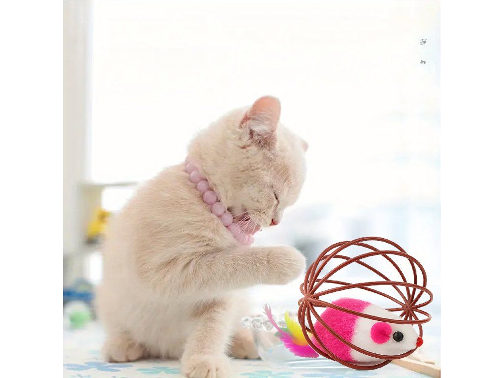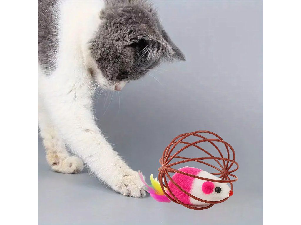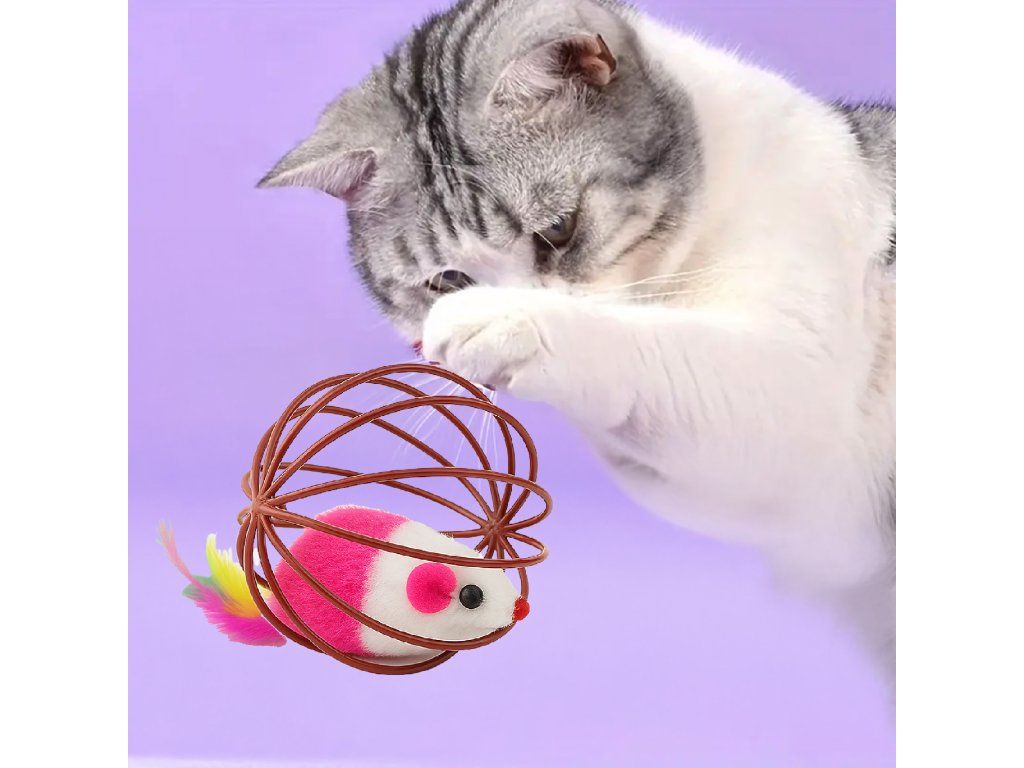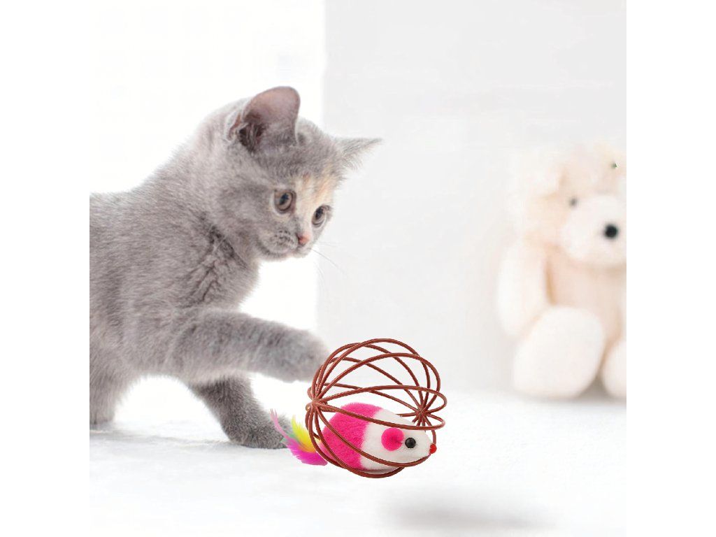 Zajišťuje dlouhé hodiny zábavy – kočka ji může honit, kutálet a snažit se dostat myšku z klece.