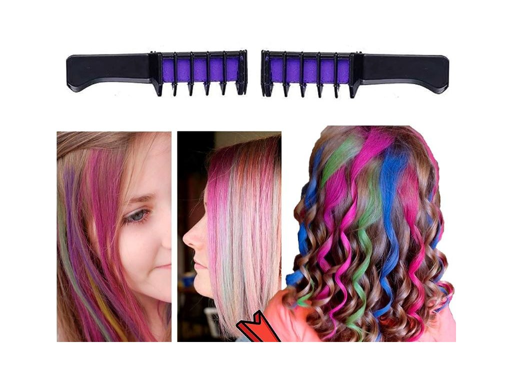 Hřeben na barvení vlasů je produkt, který dodává dočasnou barvu a výraznost. Jedná se o druh křídy/barvy na vlasy , kterou lze používat krátkodobě, bez nutnosti trvalého barvení. Umožňuje experimentovat s různými barvami a účinky na vaše vlasy , které vám dávají nové možnosti stylingu.