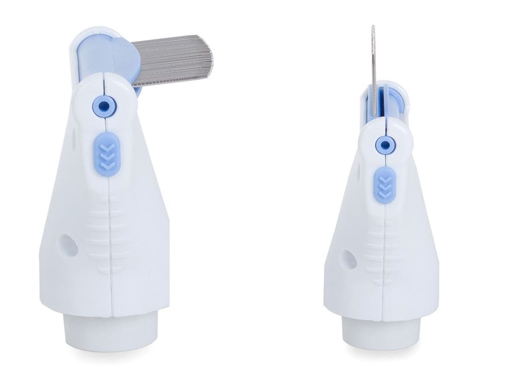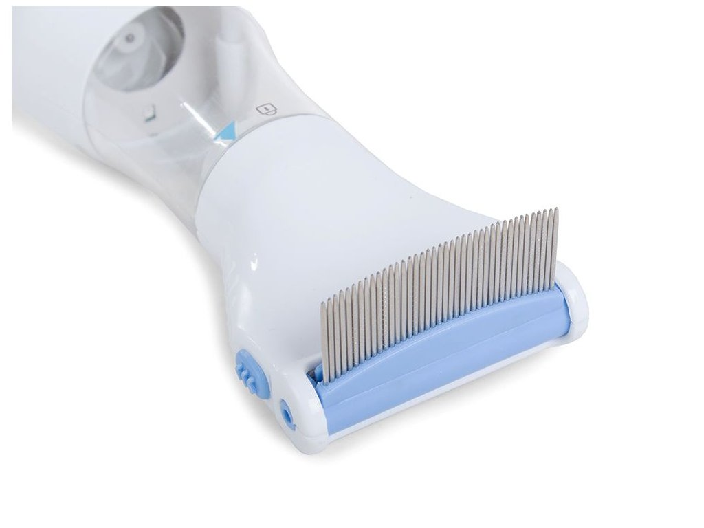 Hřeben z nerezové oceli, který hladce a příjemně přejíždí po pokožce hlavy a jemně zvedá vši, hnidy a vajíčka. Po vysátí jsou všechny vši a jejich zbytky odeslány do záchytného filtru. Tento filtr lze snadno připevnit ke středu přístroje a po skončení práce jej lze snadno vyjmout.