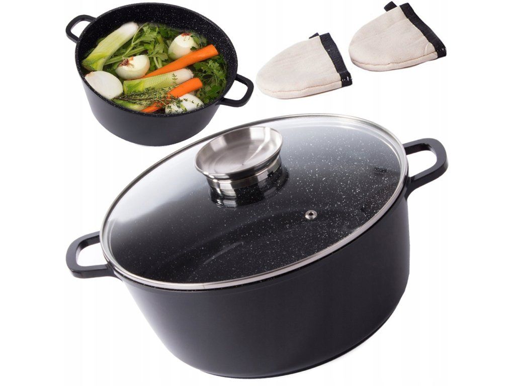Hrnec je vyroben z vysoce kvalitní hliníkové slitiny, která byla odlita pod tlakem. Je lehký, ale pevný a účinně vede teplo. Díky tomu je ideální pro přípravu pokrmů na různých typech sporáků, včetně indukčních.