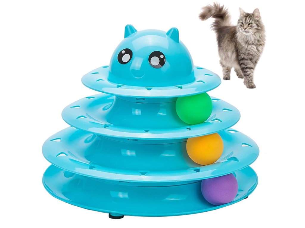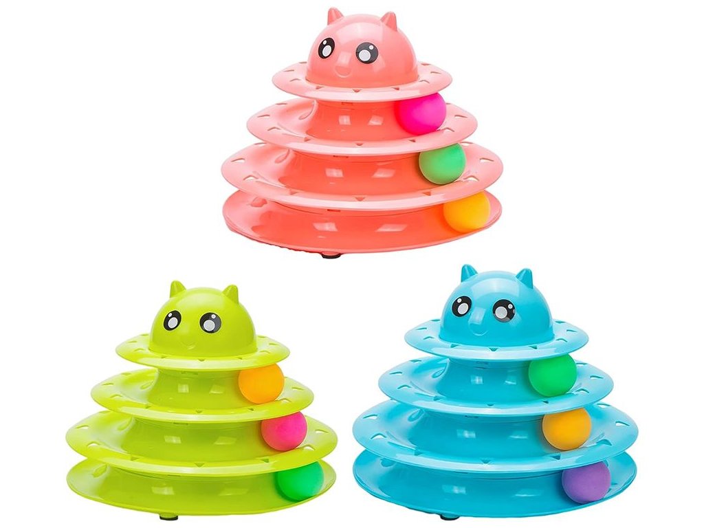 Interaktivní věž s míčky je hračka, která vaši kočku intelektuálně stimuluje. Vaše kočka bude muset přemýšlet a plánovat, jak míčky chytit, což pomáhá rozvíjet myšlení.