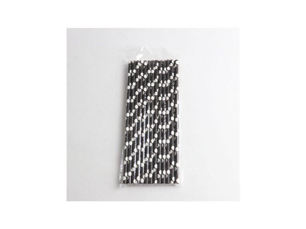 Jednorázové papírové brčka 19,7 x 0,6 cm, 25 ks, ČERNÉ s BÍLÝMI TEČKAMIDoplňkové parametry