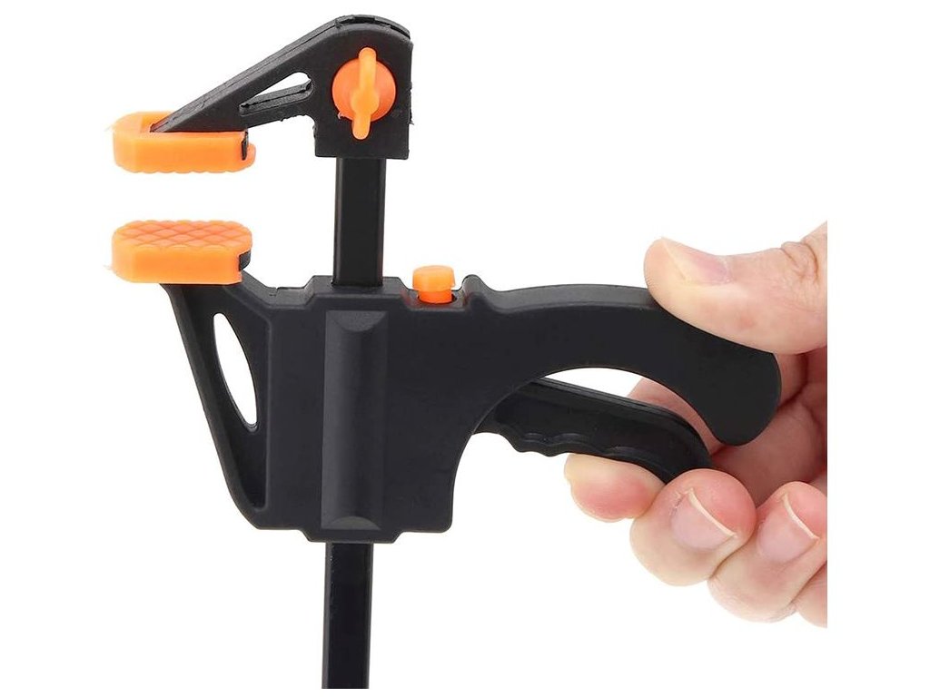 Tesařská svěrka umožňuje přesné ovládání. Rychlý posuvný systém umožňuje ovládání svěrky jednou rukou. Má schopnost přemístit horní čelist a použít svorku jako roztahovač.