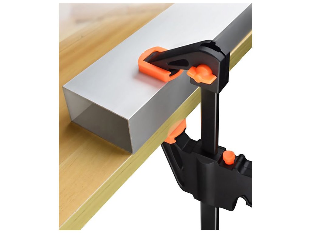 Tesařská svěrka umožňuje přesné ovládání. Rychlý posuvný systém umožňuje ovládání svěrky jednou rukou. Má schopnost přemístit horní čelist a použít svorku jako roztahovač.