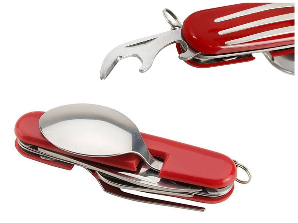 Kapesní nůž, 4 v 1, vojenská lžíce, turistický příbor