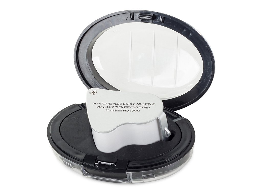 Kapesní šperkařská lupa s 30x a 60x zvětšením je ideální pro každodenní použití. Mohou ji používat klenotníci, numismatici, servisní technici elektroniky atd.