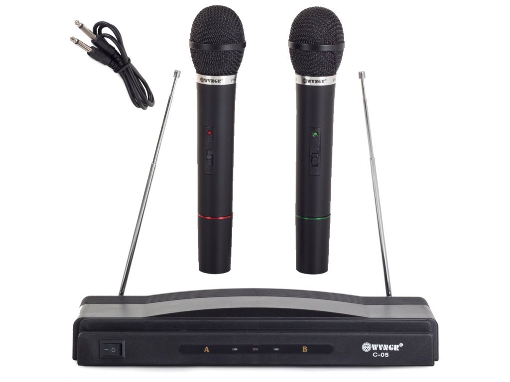 Mikrofony pracují na různých frekvencích, takže je lze používat společně nebo samostatně.