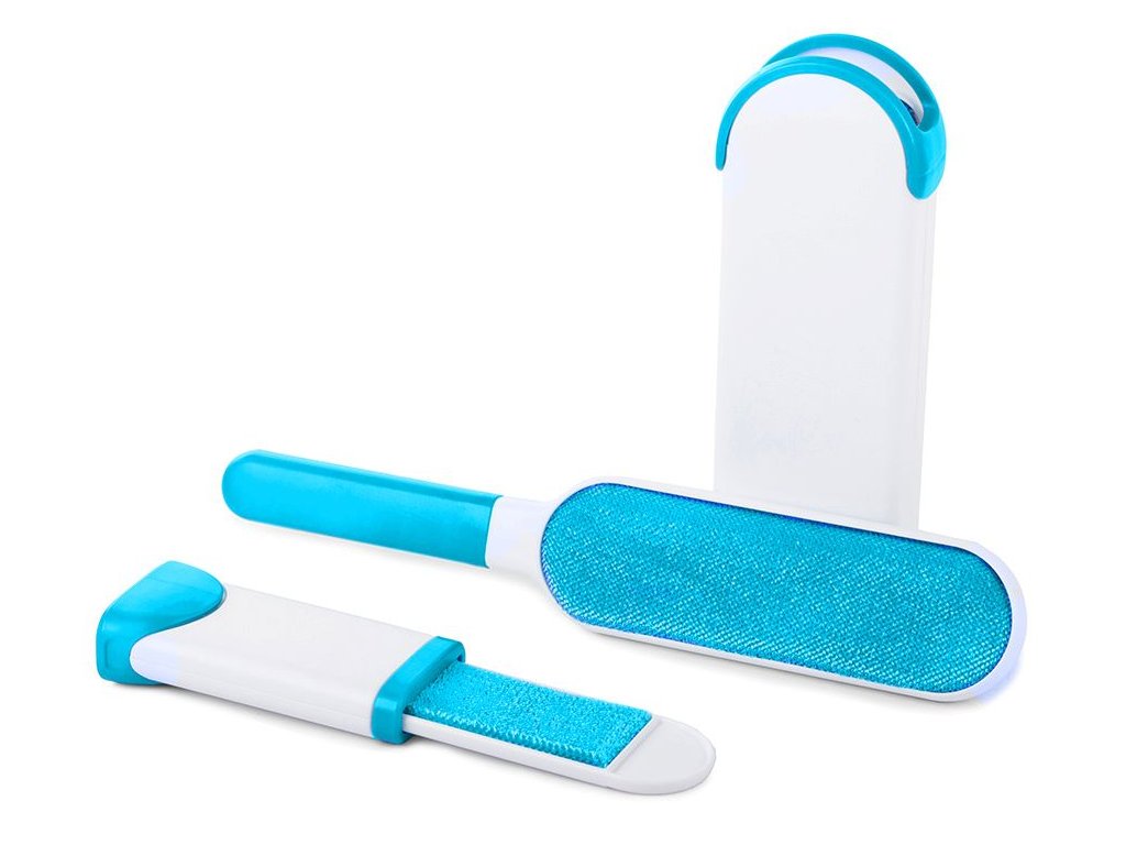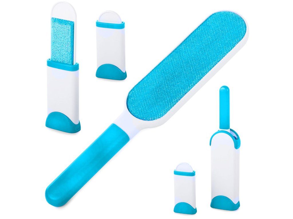 Kartáč na čištění chlupů, vlasů a nečistot, oboustranný - modrý