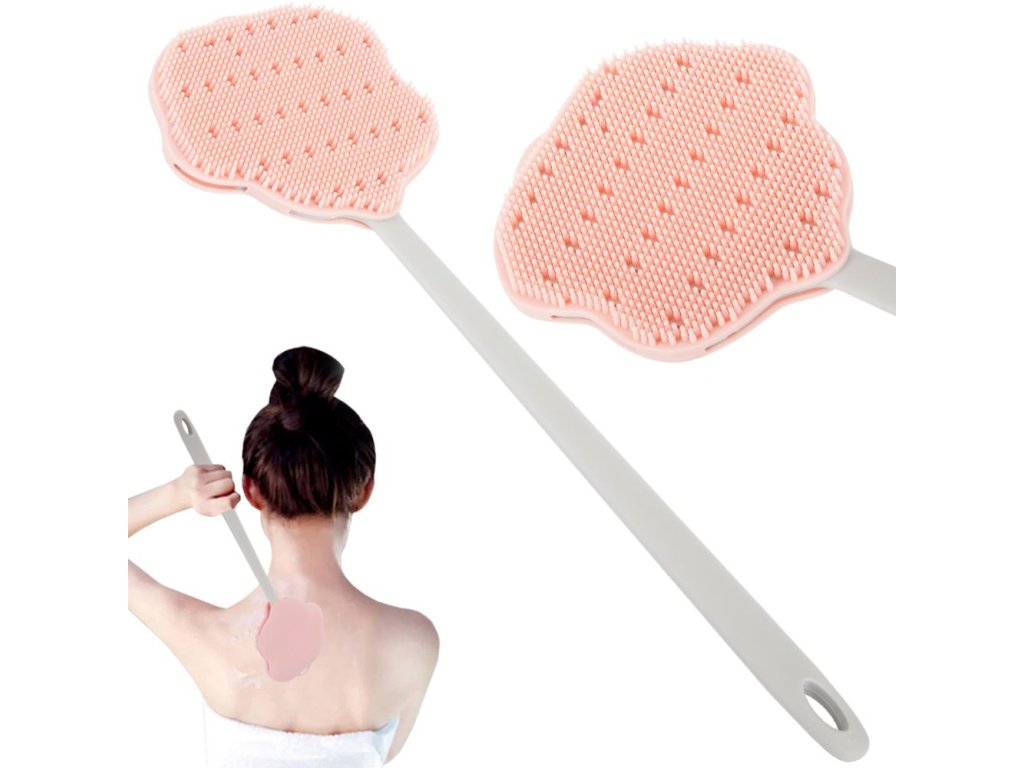 Kartáč na mytí zad s rukojetí, silikonová rukojeť, houbička - růžový