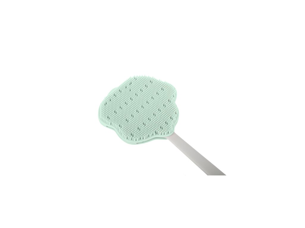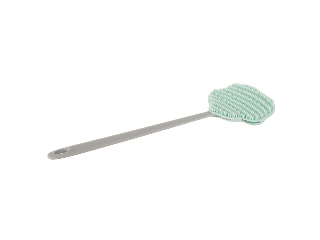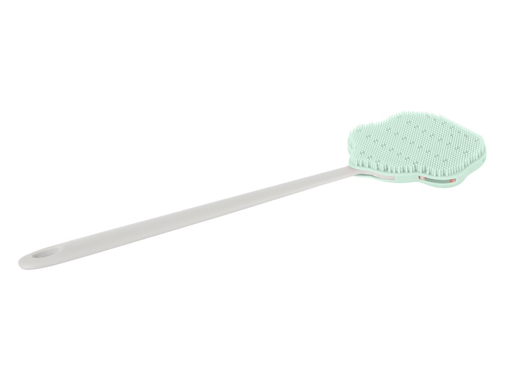 Kartáč na mytí zad s rukojetí, silikonová rukojeť, houbička - zelený