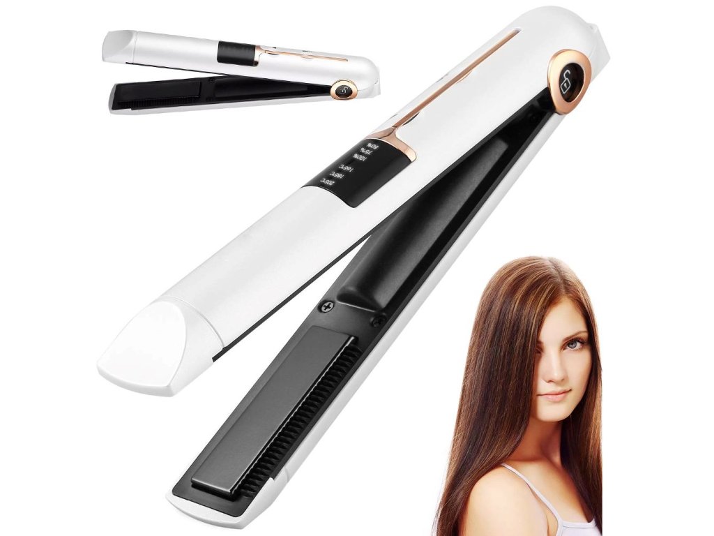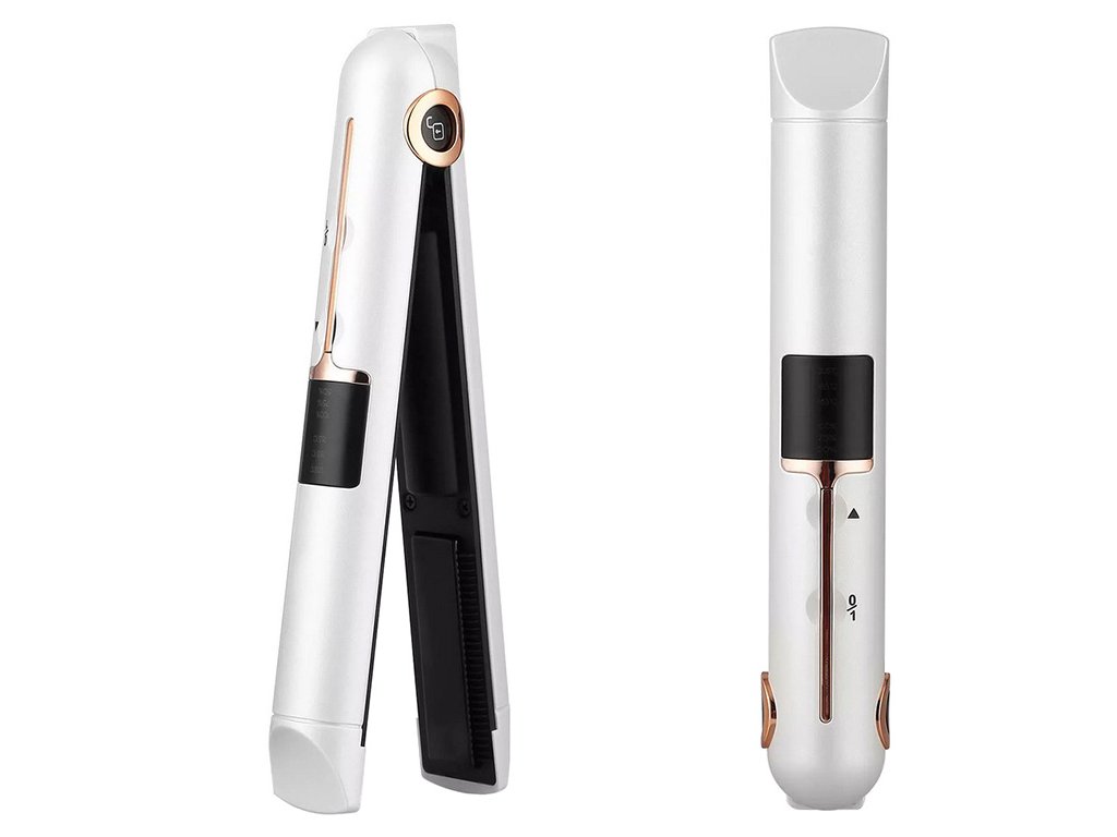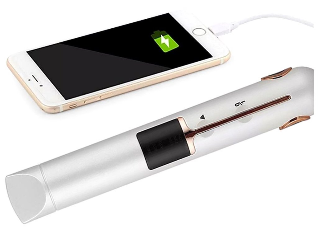 Žehlička na vlasy s přenosným a kompaktním designem je ideální pro úpravu vlasů na pódiu, na rande, na večírku nebo do práce. Zařízení je bezdrátové a lze jej snadno vzít na cesty. Sada obsahuje kryt a USB nabíjecí kabel. Žehlička se dá použít i jako nabíječka telefonu.