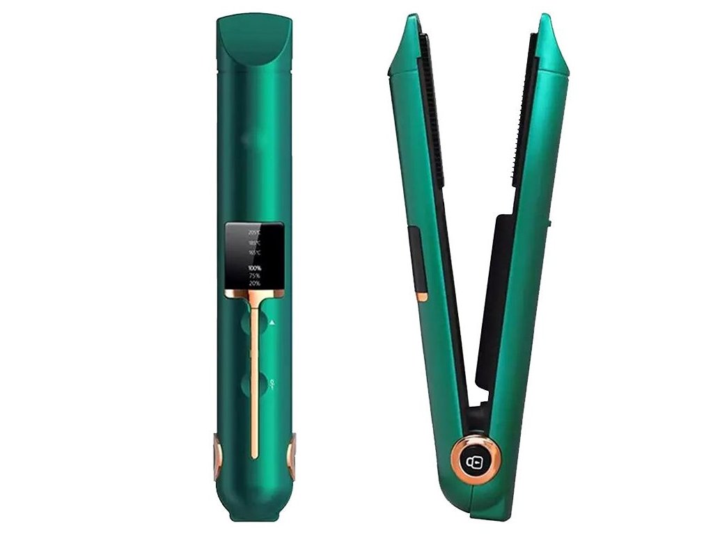 Žehlička na vlasy s přenosným a kompaktním designem je ideální pro úpravu vlasů na pódiu, na rande, na večírku nebo do práce. Zařízení je bezdrátové a lze jej snadno vzít na cesty. Sada obsahuje kryt a USB nabíjecí kabel. Žehlička se dá použít i jako nabíječka telefonu.