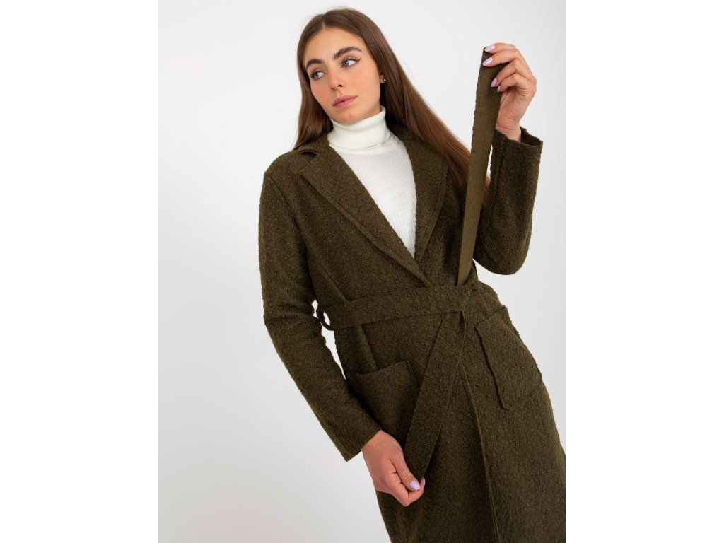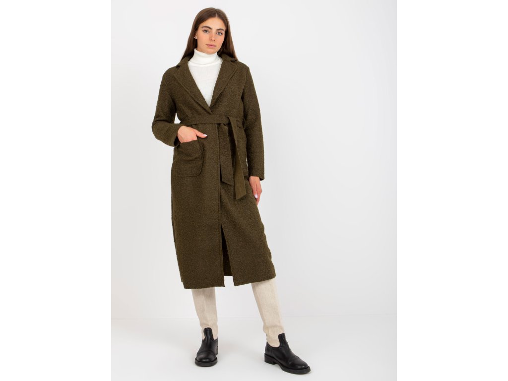Khaki plyšový maxi kabát s páskem Merve OCH BELLA