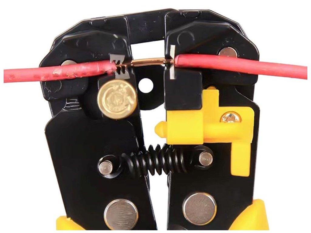 Tento praktický nástroj umožňuje rychlé a přesné odstranění izolace z jednožilových nebo vícežilových kabelů. Chcete-li kabel odizolovat, zasuňte kabel do čelistí, dokud se neopírá o nástroj, a poté stiskněte rukojeť.