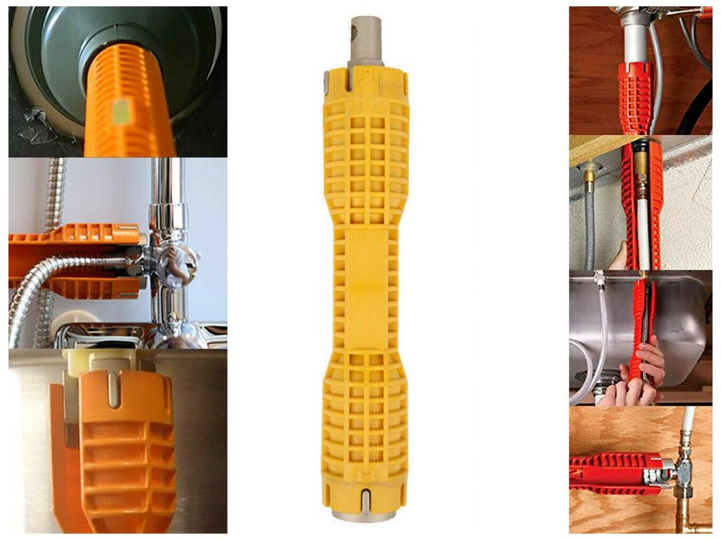 Univerzální klíč na sanitární instalace, usnadňuje montáž a demontáž dřezů, umyvadel, vodovodních baterií, ohřívačů vody atd.
