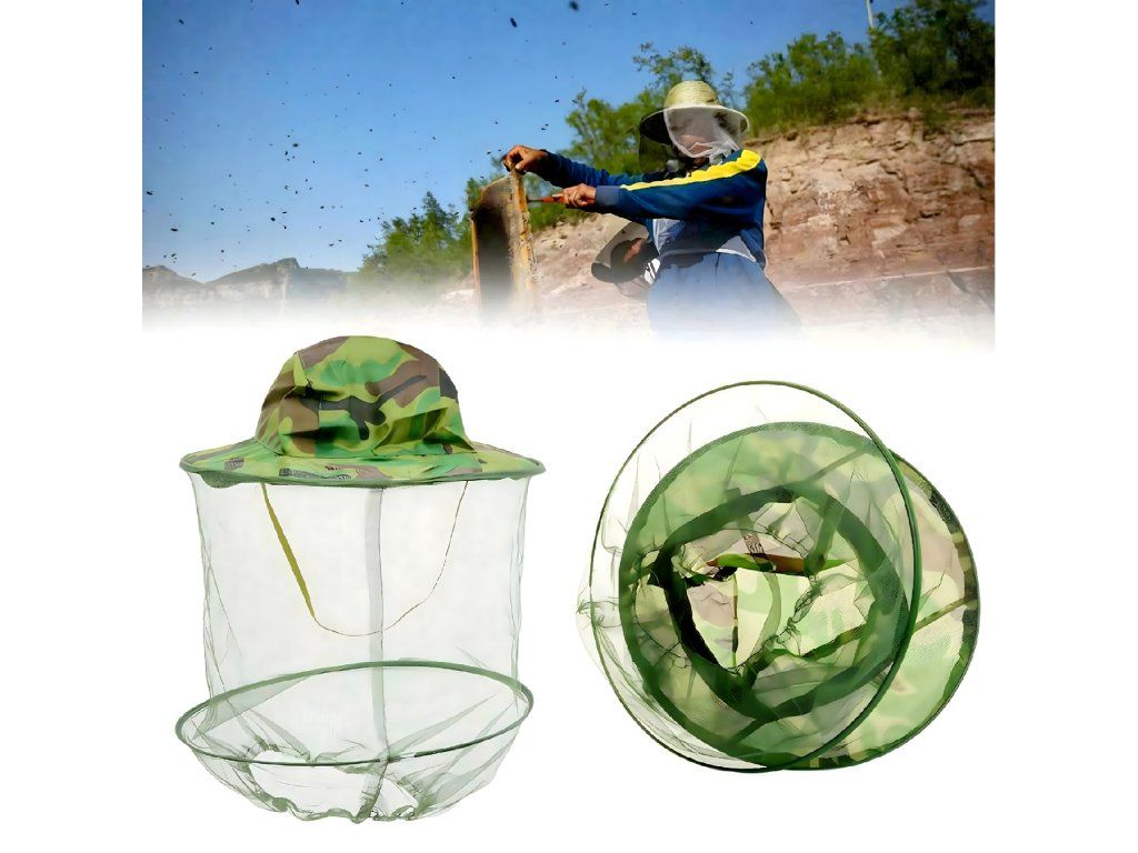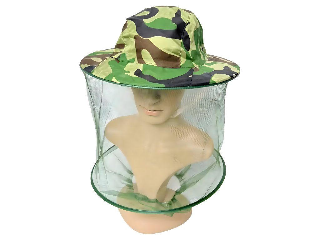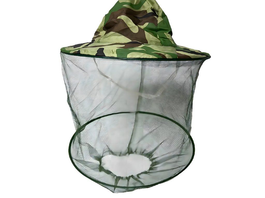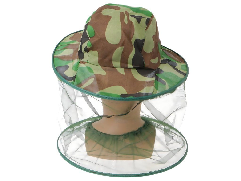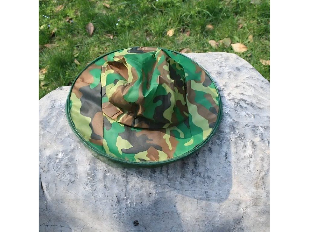 Klobouk s moskytiérou pro včelaře a rybáře v kamuflážovém provedení s moskytiérou proti hmyzu a komárům