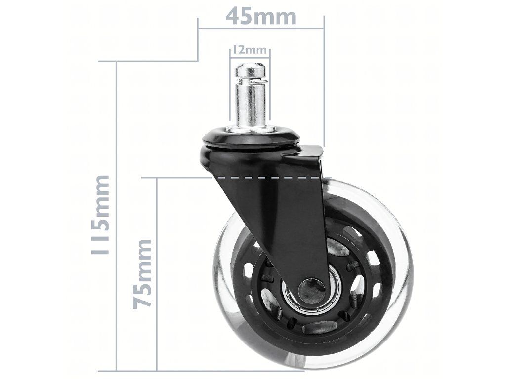 Standardní průměr 12 mm – kompatibilní s většinou kancelářských a herních židlí.