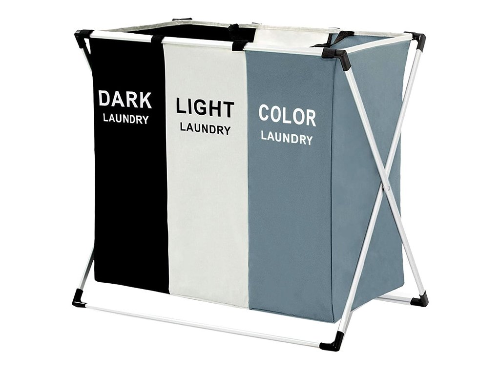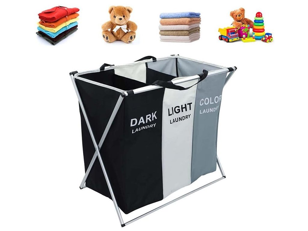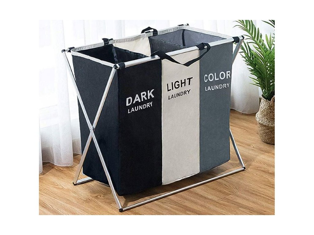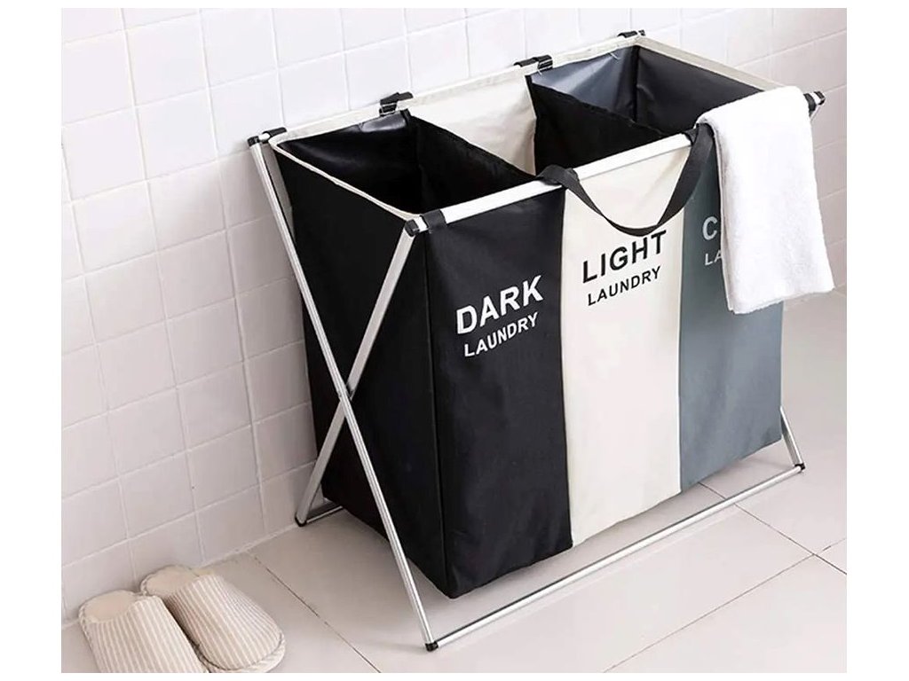 Díky třem samostatným přihrádkám můžete třídit různé druhy oblečení současně, což výrazně zlepší vaše každodenní prádlo. Náš koš, rozdělený do tří přihrádek, vám umožní dosáhnout dokonalé organizace v prádelně.