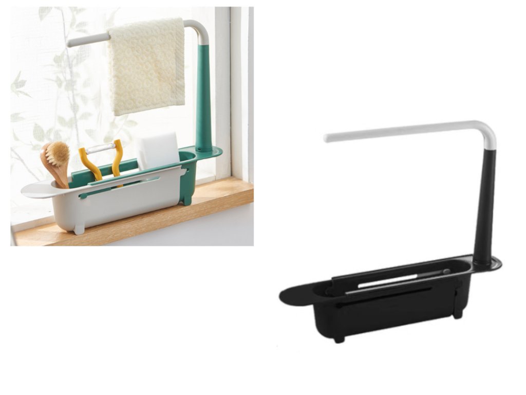 Košík, odkapávač na myčky, utěrky na dřez, teleskopický 32-45 cm ČERNÝ