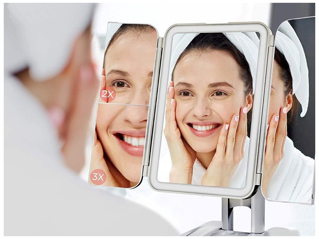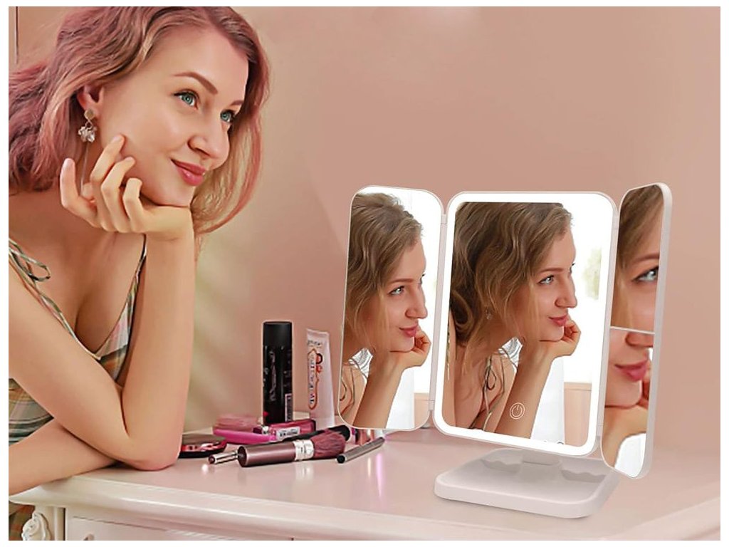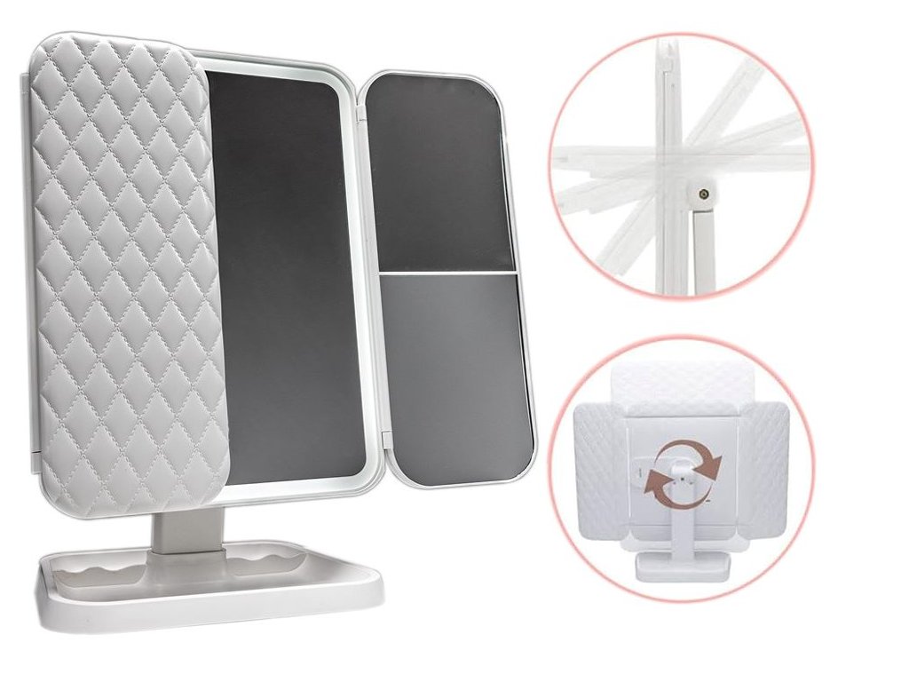 Kosmetické LED zrcadlo, osvětlené, skládací make-up zrcátko