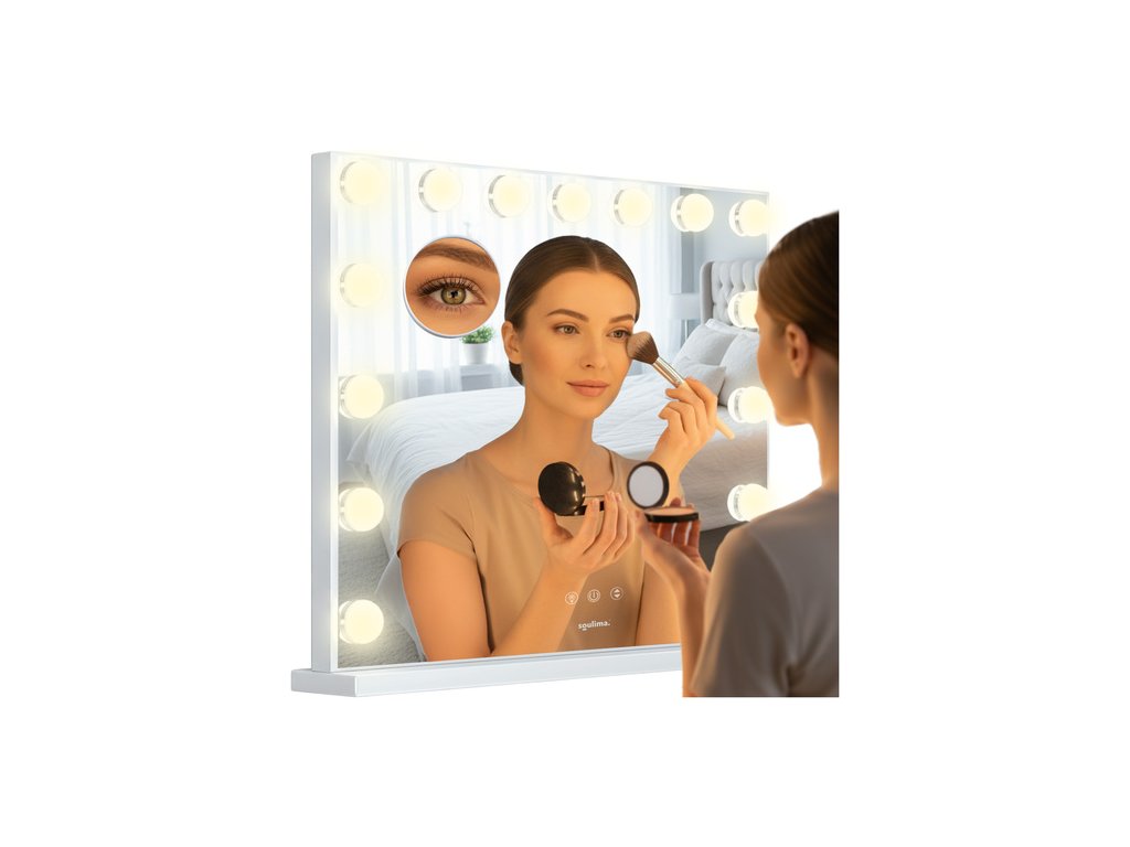 Elegantní kosmetické zrcátko LED o rozměrech 58x46 cm kombinuje hollywoodský styl s profesionálním osvětlením, které zvýrazní každý detail vaší krásy. Je vybaven 15 energeticky úspornými LED žárovkami a dotykovým panelem s nastavitelným jasem a barvou světla (teplá, neutrální, studená) a poskytuje ideální podmínky pro líčení, péči o pleť a úpravu vlasů . Není to jen praktický nástroj, ale také stylový doplněk vašeho toaletního stolku nebo kosmetického salonu.