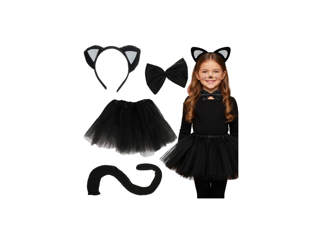 Dívčí kostým černé kočky , převlek, sada 4 v 1!
