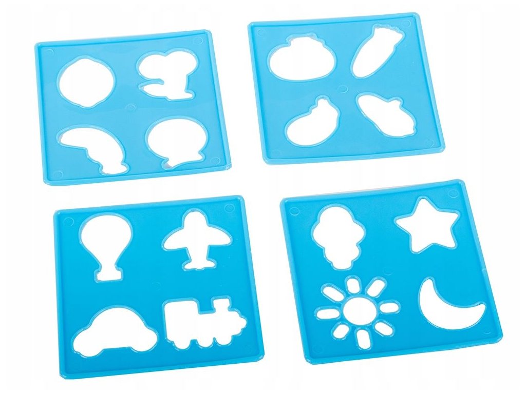 ✅ 4 x modrá tvarová šablona ( letadlo, slunce atd.)