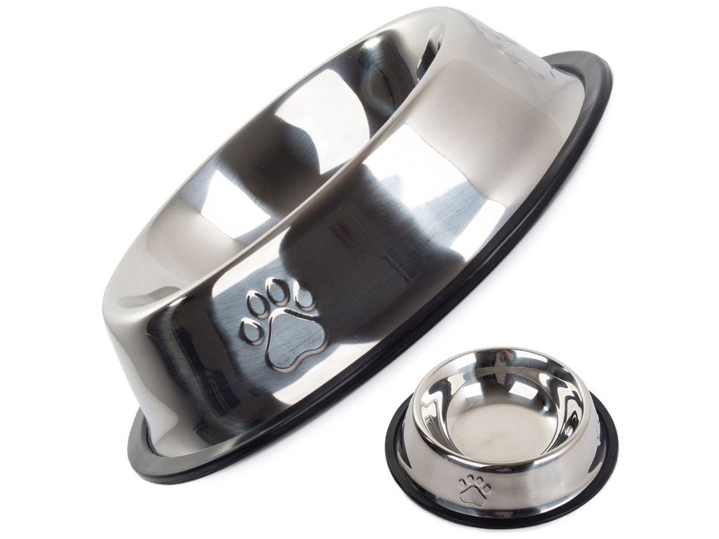 Kovová miska pro psa a kočku, stříbrná, protiskluzová, 1,3l