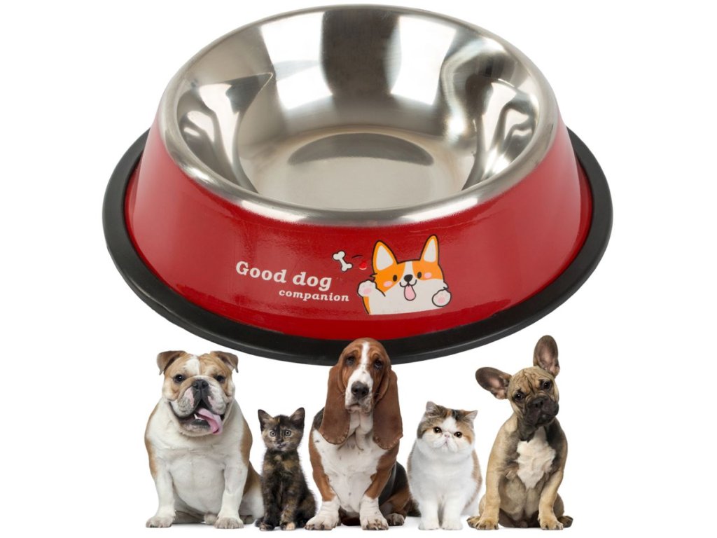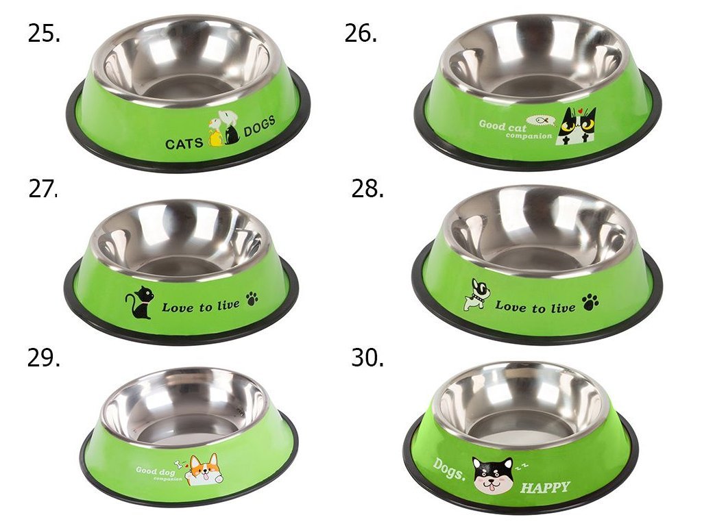 Vyrobeno z nerezové oceli, má protiskluzovou gumu, která zabraňuje pohybu misky na jídlo.