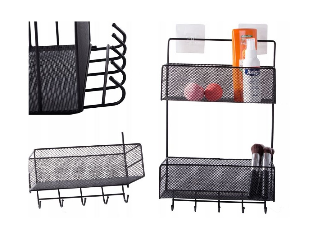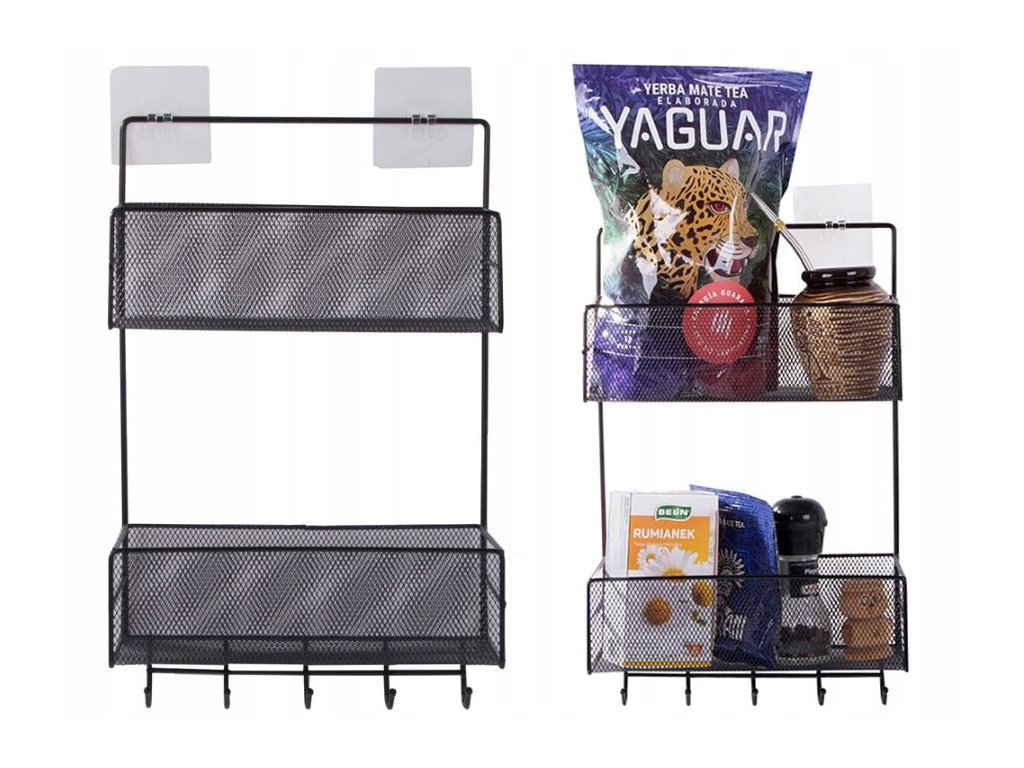 Kovový organizér do kuchyně, závěsná police s věšáky