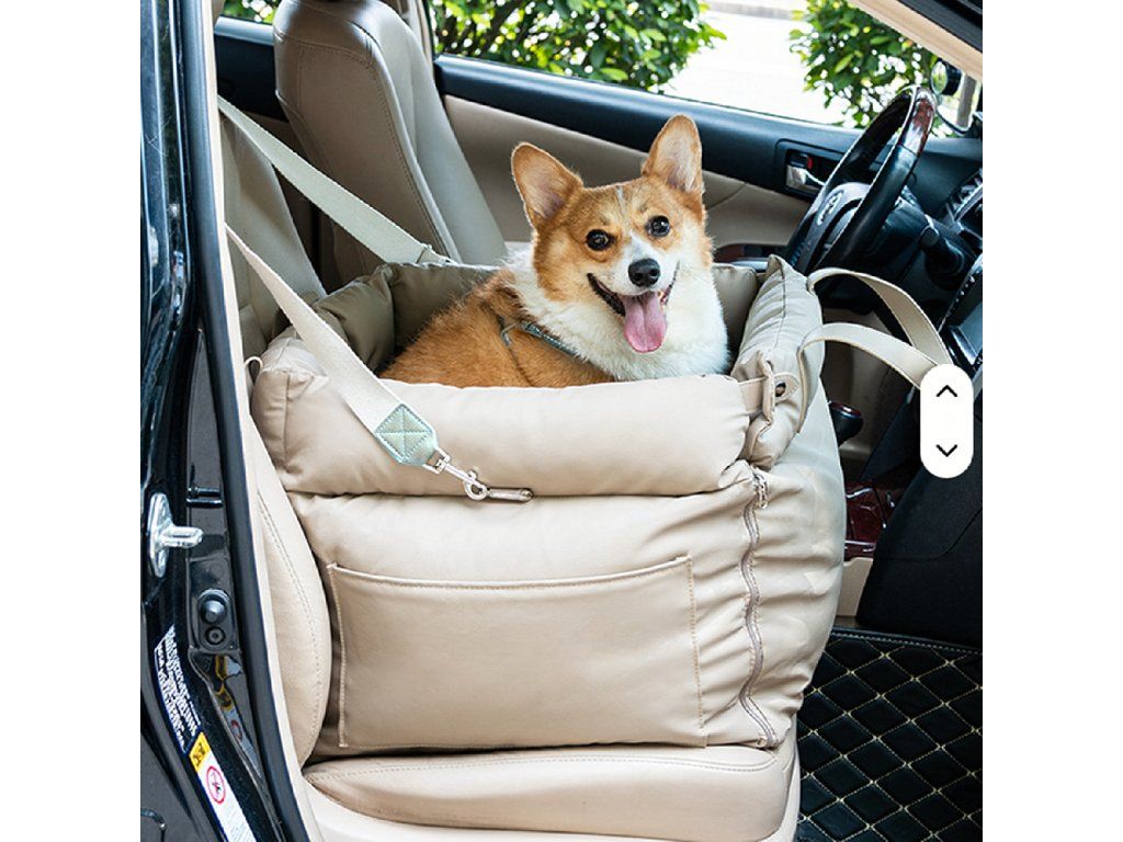 ✔️ Bezpečnost – upevňovací popruh na opěrku hlavy a možnost připoutání vodítka chrání mazlíčka během jízdy.