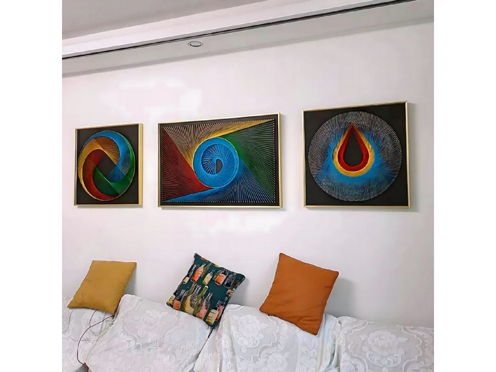 Hotová díla String Art lze použít k dekoraci interiéru. Mohou zdobit stěny v domě, kanceláři nebo na jiných místech a dodávat místnostem jedinečný charakter a umělecký šarm.