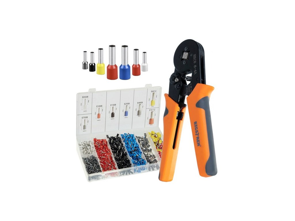 - ORGANIZÁTOR S 8 VELIKOSTMI RUKÁVŮ – sada s krimpovacím nástrojem obsahuje průhledný organizér, který pojme vše uvnitř 8 různých velikostí krimpovacích hrotů od 0,5 mm2 do 10 mm2 . Každá velikost je dodávána v jiné barvě.