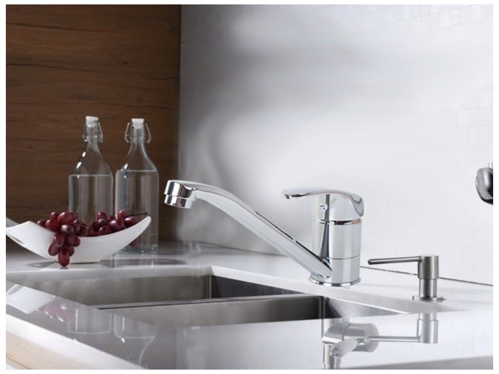 Kuchyňská baterie v metalickém chromovém odstínu se bude hodit jak do klasických interiérů, tak do moderních prostorových aranžmá.