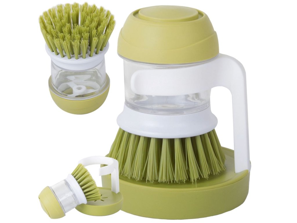 Kuchyňský kartáč na mytí nádobí, dávkovač mýdla se stojanem - zelená