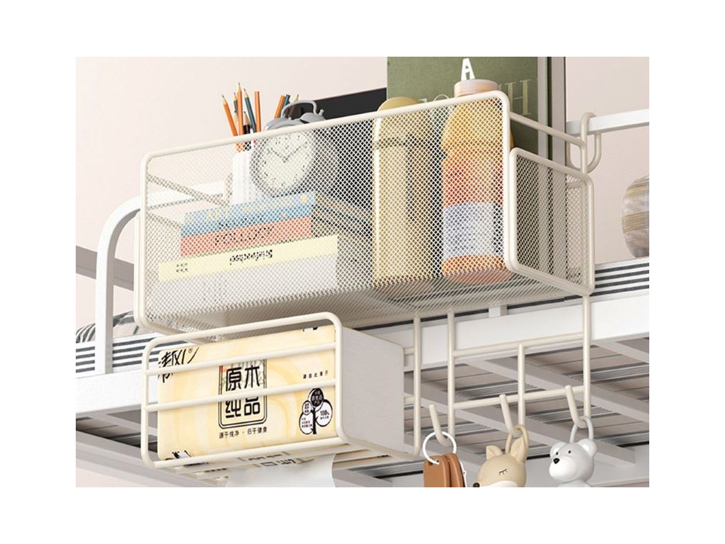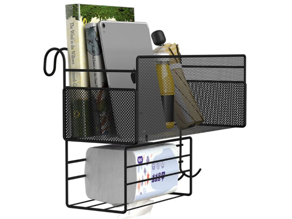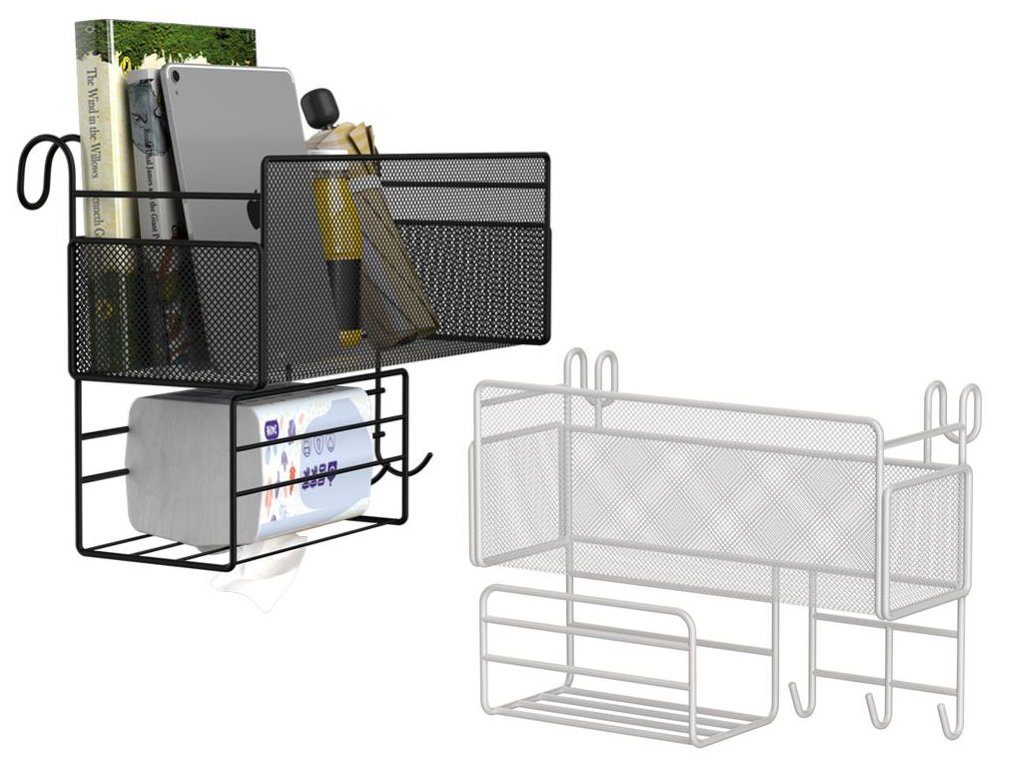Nástěnný organizér je vybaven prostornou policí, která je ideální pro uložení knih, tabletů, kosmetiky nebo jiných doplňků. Další prostor na kapesníky a tři háčky poskytují ještě více funkčnosti a usnadňují udržování pořádku.