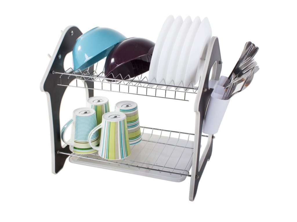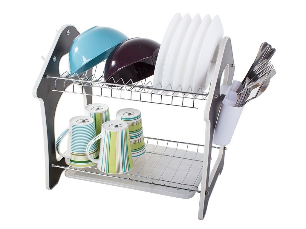 Odkapávač nádobí je nezbytným vybavením každé kuchyně. Je velmi praktický, s úspěchem pojme velké množství talířů, misek nebo sklenic a má 2 úrovně sušení.