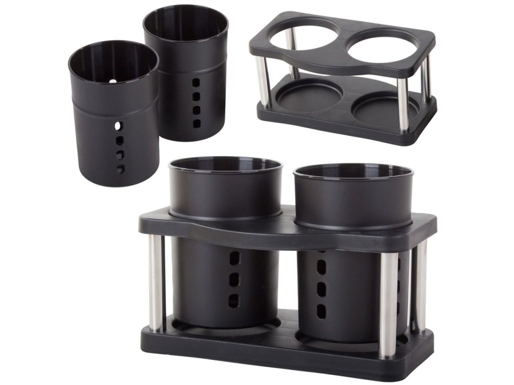 Organizér nám pomůže uspořádat příbory ihned po umytí . Je rozdělen do dvou šálků, což umožňuje seskupit podobné předměty při sušení. Na dně má otvory, které usnadňují odtok vody.