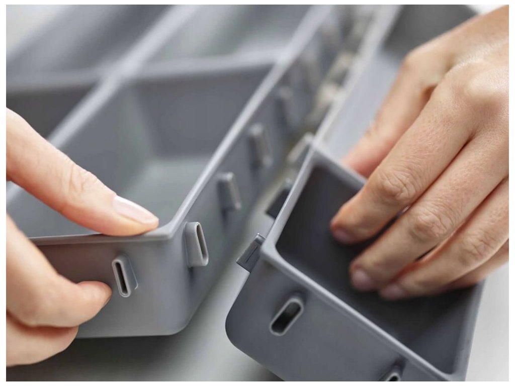 Celá sada se skládá z 10 přihrádek různých velikostí Každý z nich je vybaven speciálními háčky pro rychlé spojení.