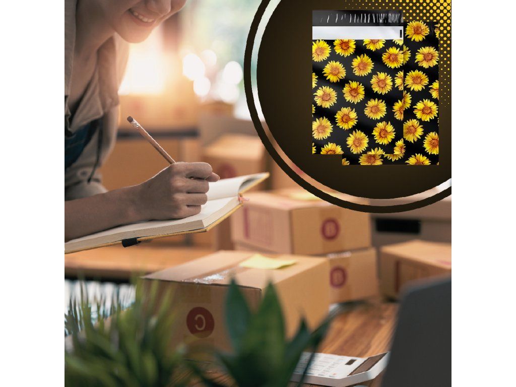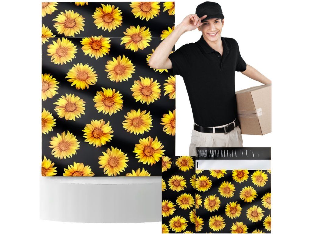 KURÝRNÍ FOLIOVÁ OBÁLKA ČERNÁ S VZOREM SLUNEČNIC 255 x 370 mm 50 ks