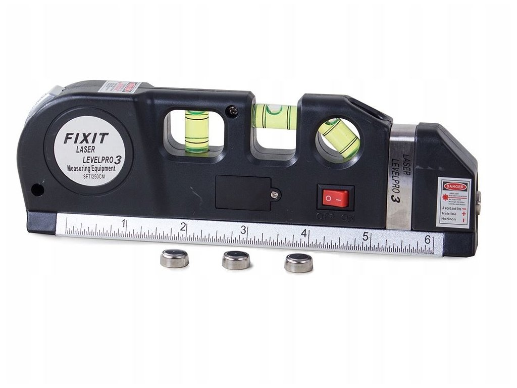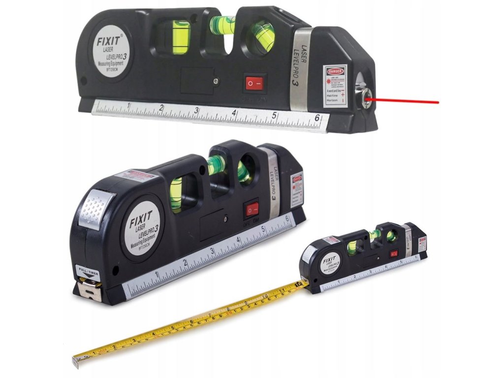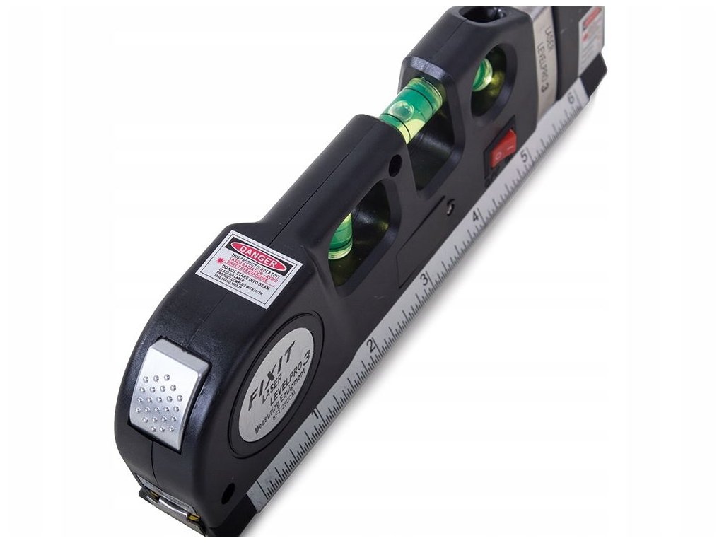 Kromě laseru má vodováha také standardní metr do 15 cm, svinovací metr do 250 cm v palcích a stopách. Kromě toho má vodováha 3 libelly pro účely vyrovnání v jakékoli rovině.