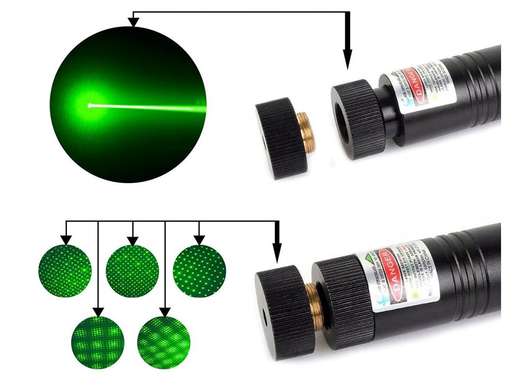 Po odšroubování uzávěru laser zazáří soustředěným paprskem zeleného světla. Pro zajištění bezpečného používání je laser kromě tlačítka vybaven zámkem na klíč , který tak chrání před náhodnou aktivací indikátoru.