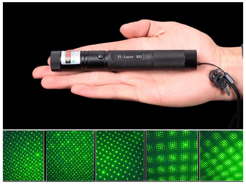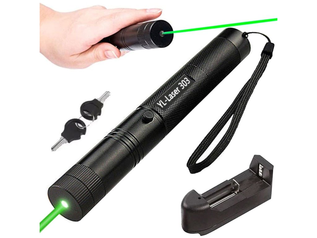 Laserové ukazovátko, výkonný laser se zeleným bodem + klíček
