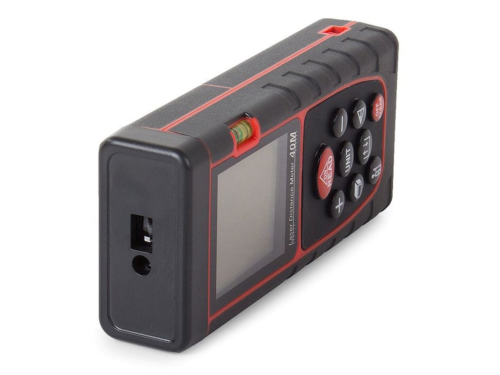 Laserový dálkoměr slouží k určení vzdálenosti od objektu pomocí laserového paprsku určeného k měření vzdáleností až 40 m. Díky použití laserové technologie se vyznačuje vysokou přesností a přesností. Používá se např. pro inventury budov, dále pro měření velkých ploch jako jsou pokoje, byty, budovy, továrny, sklady, zahrady, silnice, infrastruktura.